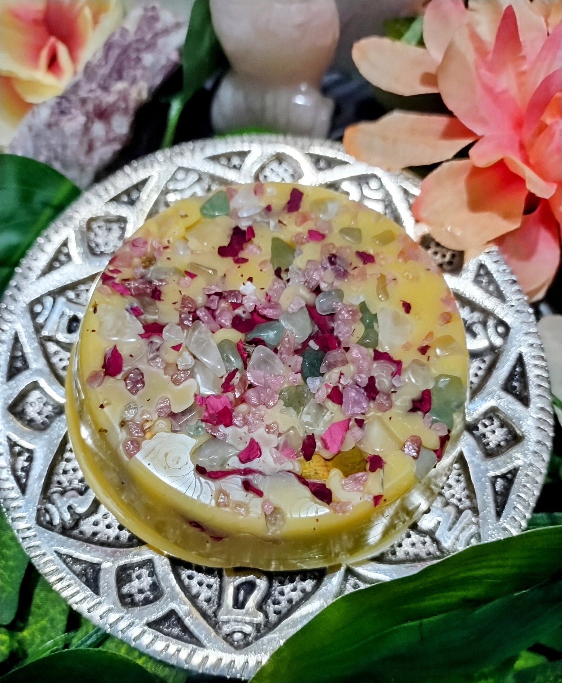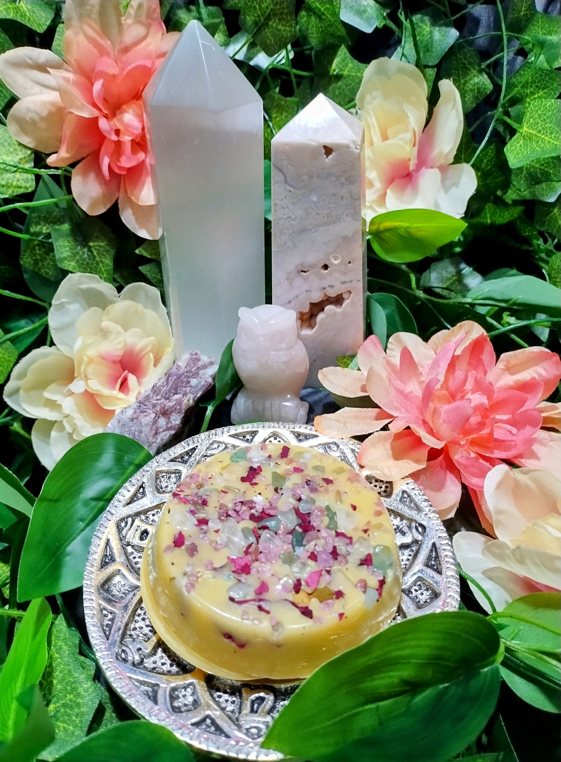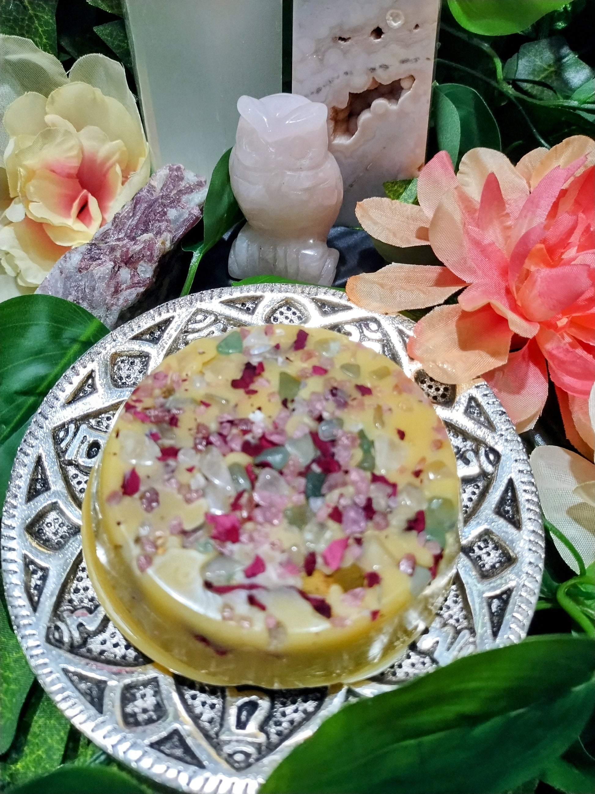 This melt supports emotional healing, heart-led living, and a deep sense of gratitude for all that is. Each element was chosen to soften emotional heaviness, open the heart space, and invite love, peace, and divine connection.