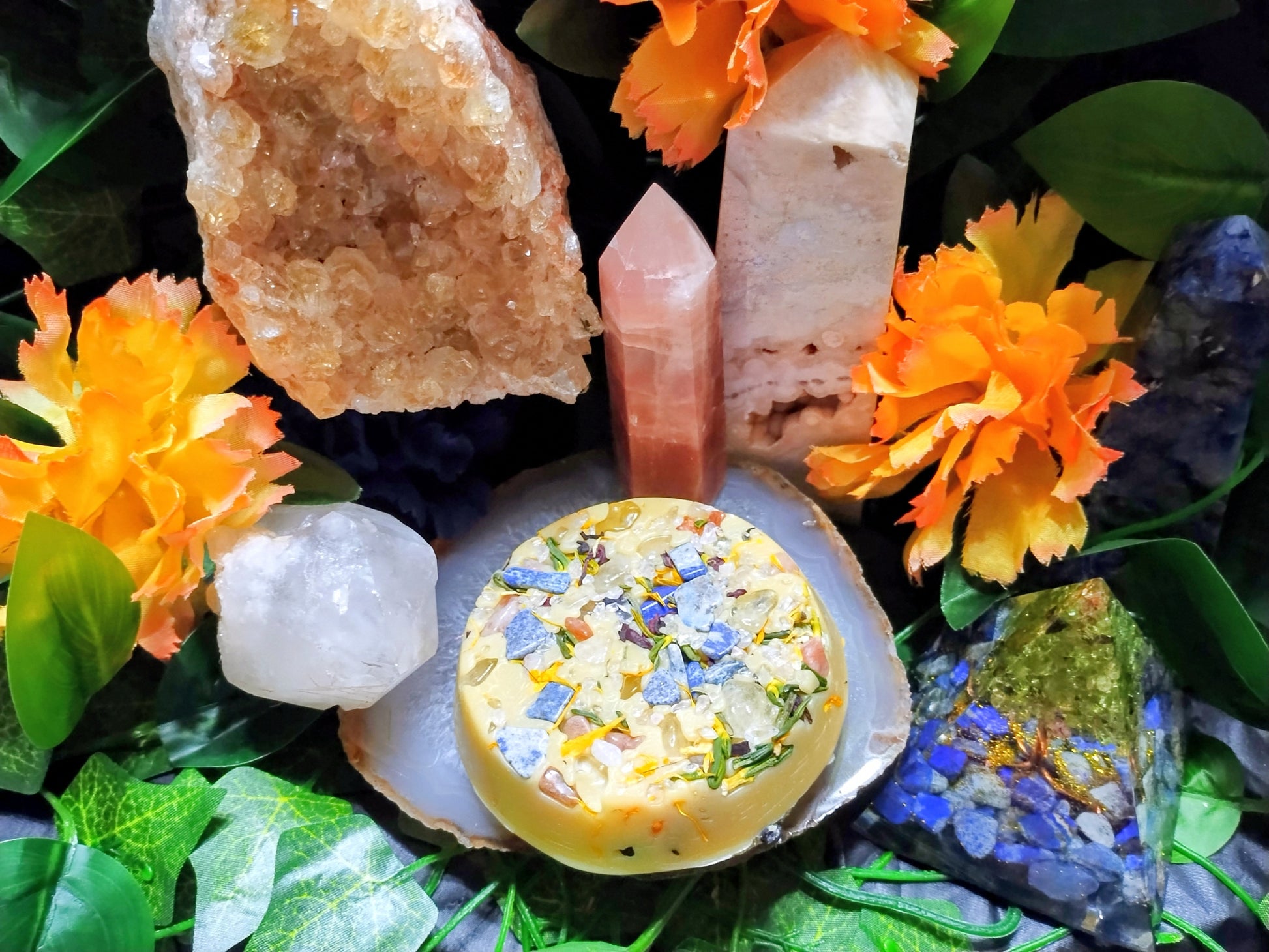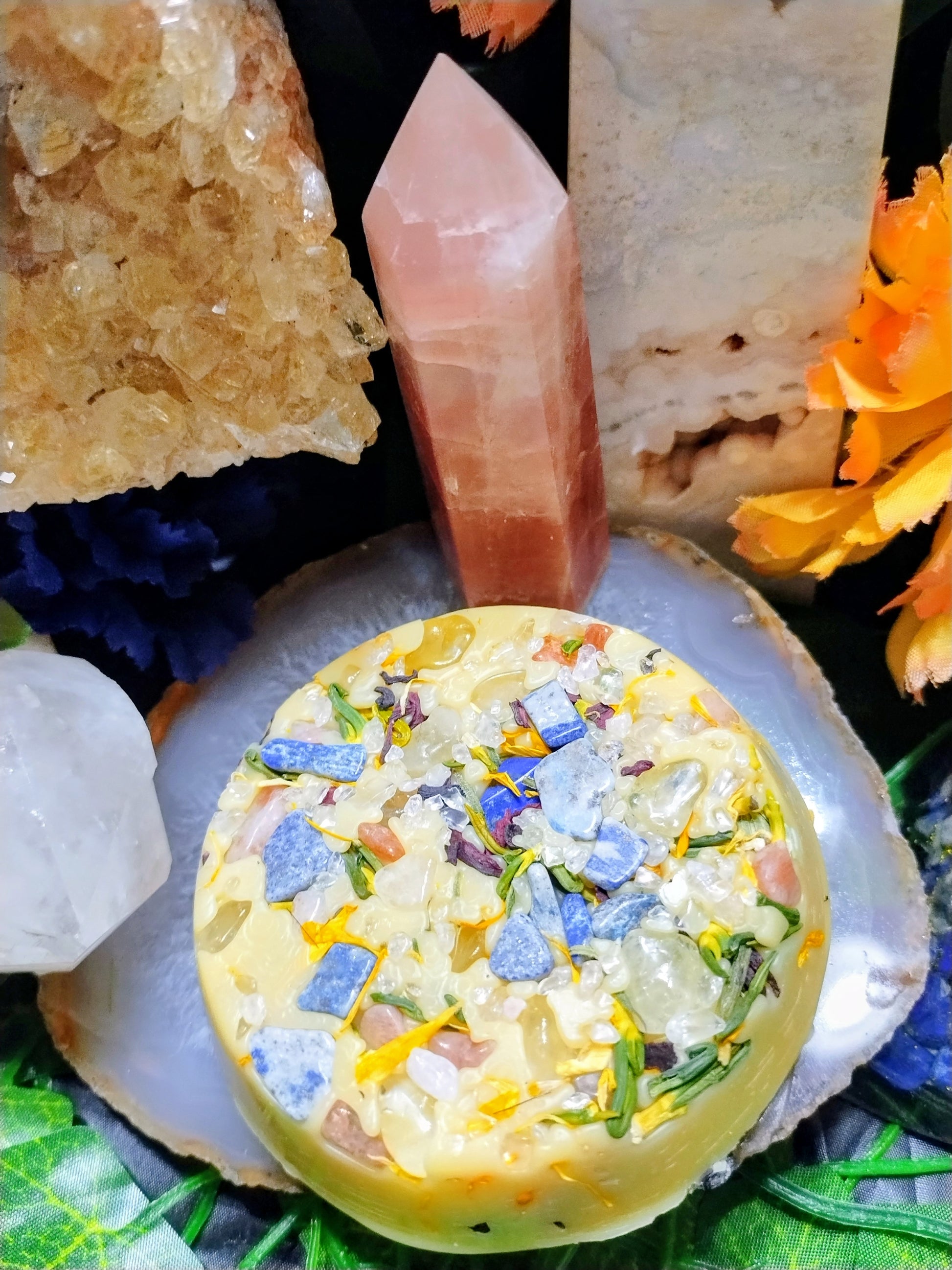 🪶 Crafted with pure essential oils for an experience that is subtle yet intentional. If you desire a more intense aroma, you're encouraged to enhance your melt with a few drops of any favorite or listed essential oil while preparing for meditation. 🪶
