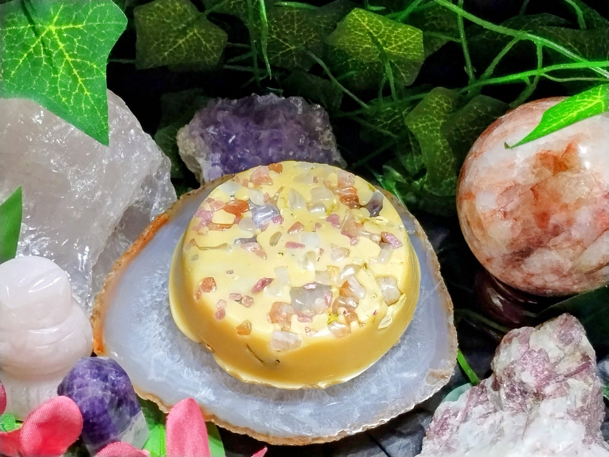 ๐ชถ Crafted with pure essential oils for an experience that is subtle yet intentional. If you desire a more intense aroma, you're encouraged to enhance your melt with a few drops of any favorite or listed essential oil while preparing for meditation. ๐ชถ
