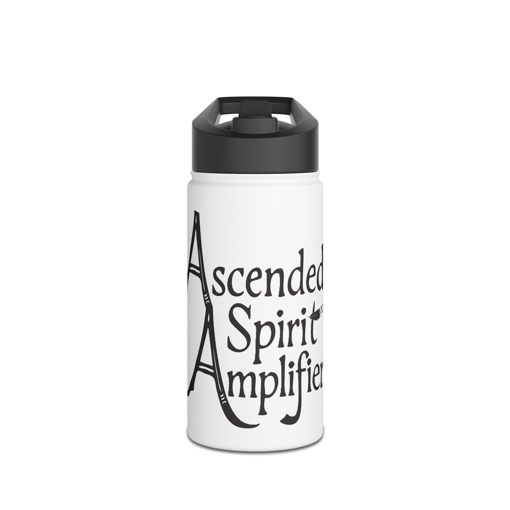 Featuring the Ascended Spirit Amplifiers logo in high-contrast detail on a sleek white finish, this bottle holds space for your practice & presence.