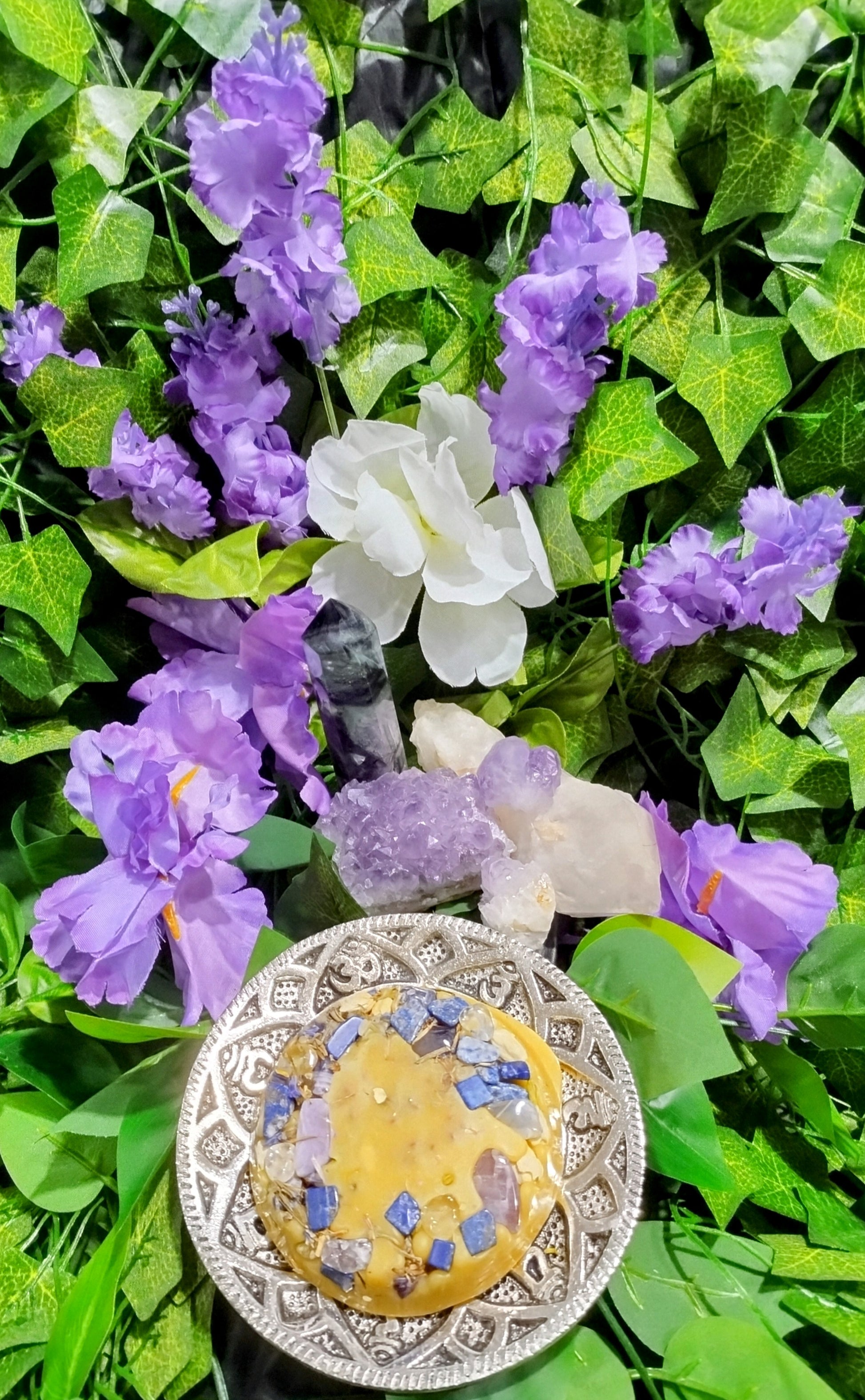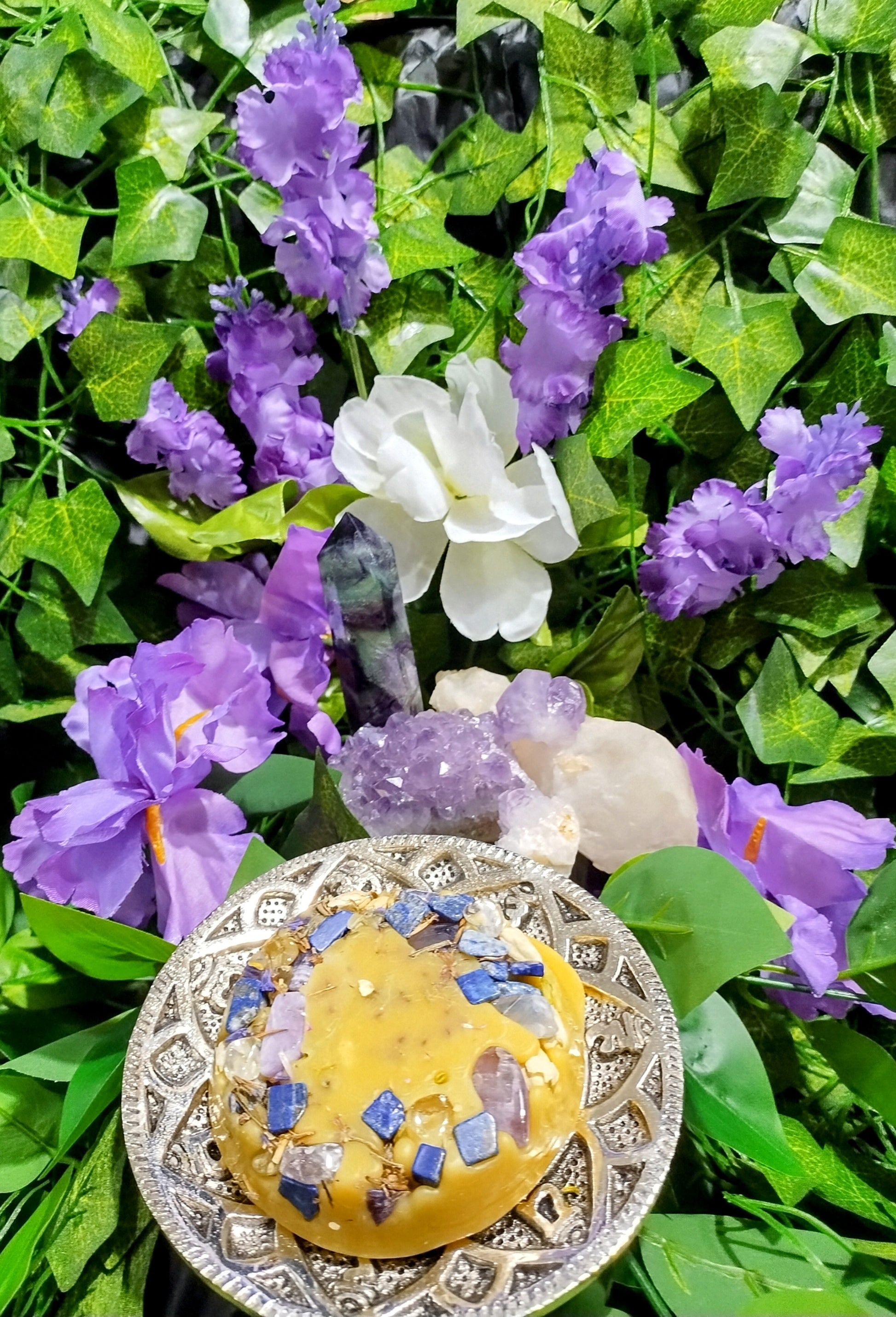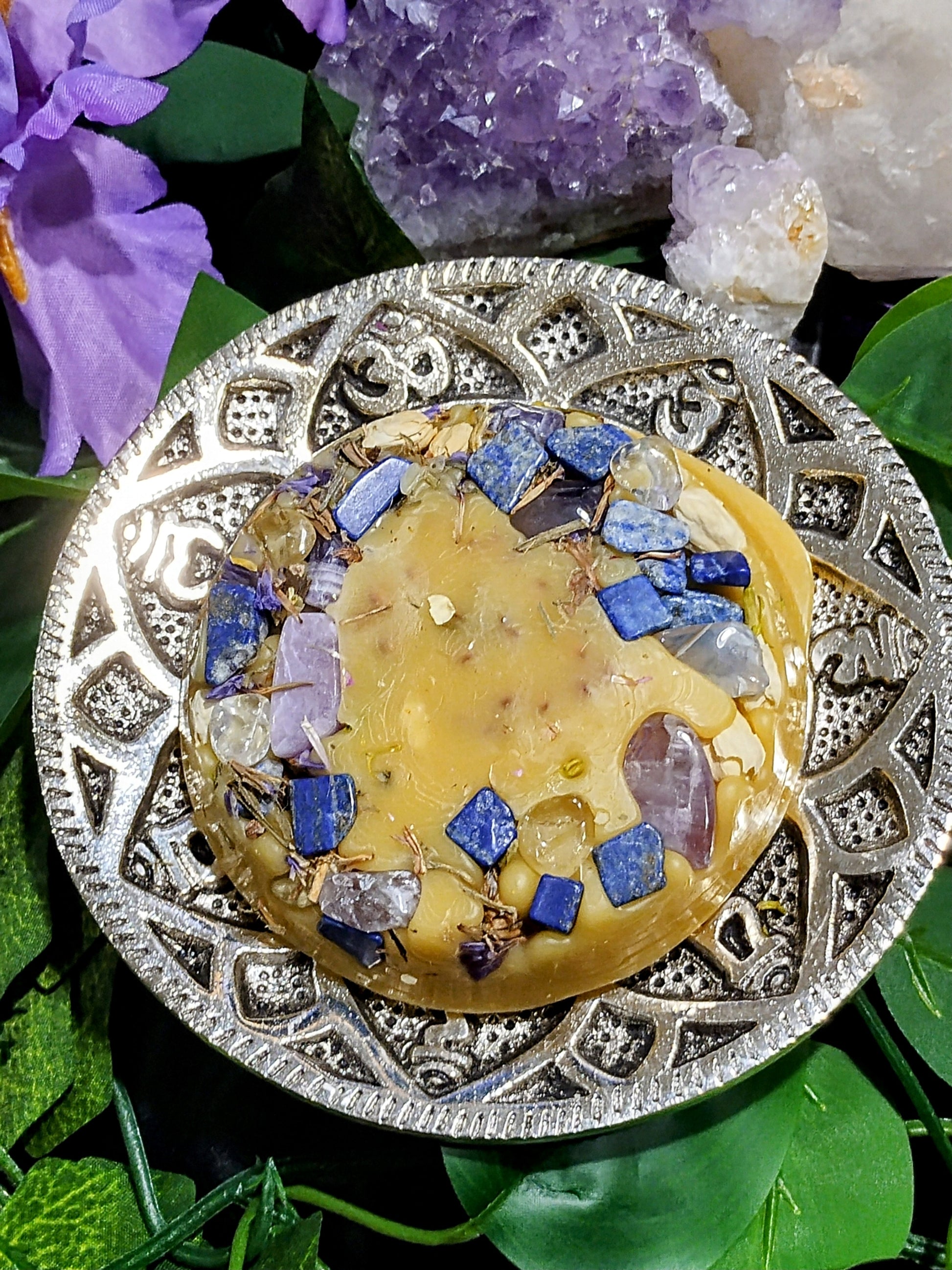✨ Place the wax melt in the melter. As it warms, the sacred blend of gemstones, botanicals, and oils activates the Third Eye Chakra, guiding you toward deepened understanding.